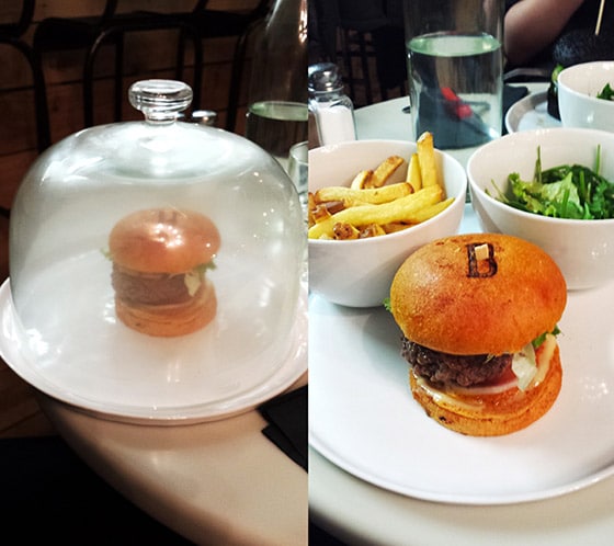 Le burger qui fume, avant et après la cloche – Crédit Photo : Stella Cuisine