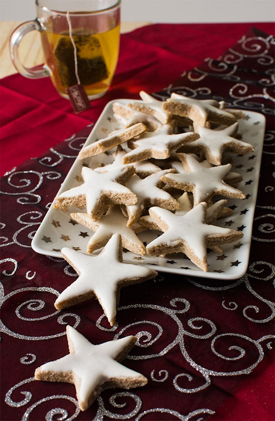 Les Bredeles (ou bredalas) sont des petits gâteaux alsaciens habituellement confectionnés fin novembre afin d’être distribués à tous les gens qu’on reçoit en décembre. Ainsi, il existe autant de sorte de bredele que de famille alsacienne… Pour ma part, j’ai voulu vous en proposer aujourd’hui une sorte que je trouve très festive : le zimsterne. Ce sont des petites étoiles à la cannelle glacées au sucre légèrement citronné. Un délice avec un bon thé !