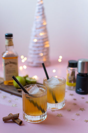 Cette fois j’ai donc imaginé cette recette de cocktail à réaliser avec ou sans alcool, c’est selon. J’ai utilisé plein de belles choses trouvées dans les rayons : le moulin à épices Microplane, des bâtons de cannelle entiers, des verres gobelets à whisky, des pailles à cocktail réutilisables, un chemin de tables avec des étoiles pailletées, et du sirop Monin French Vanilla. J’ai adoré travailler ce cocktail car, grâce au moulin à épices, le goût de la cannelle est vraiment très frais et puissant, donnant à ce cocktail de belles notes hivernales, et la possibilité de le proposer sur la table des fêtes.
