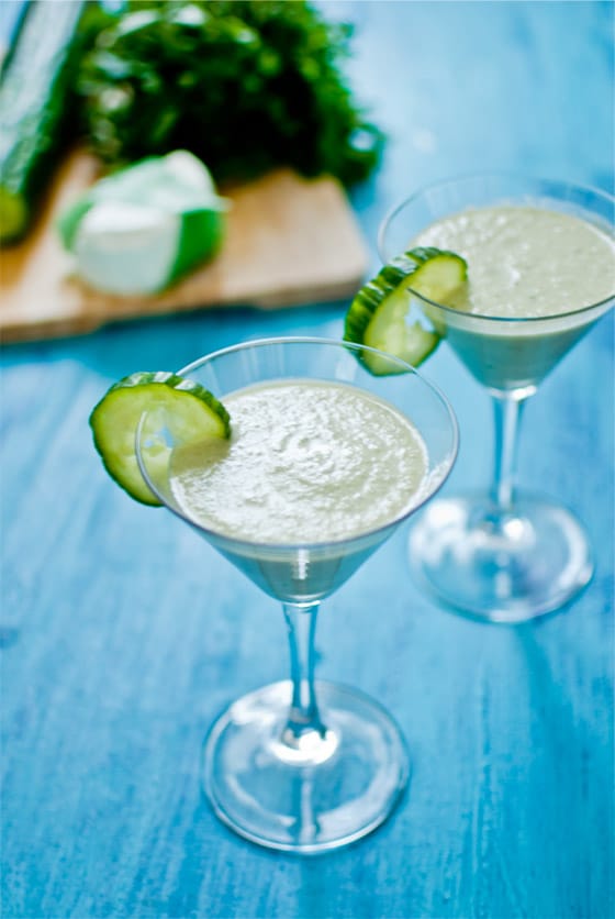 Ouh la ! J’ai une journée de retard pour la Battle Food #22 sur le thème des verrines épicées ! Alors pour l’occasion, je vous propose une méga verrine de gaspacho de concombre. Ce dernier est assaisonné de menthe et de cumin, puis adoucit par du fromage frais et du fromage de chèvre. Idéal pour les grosses chaleurs, et très simple à réaliser !
