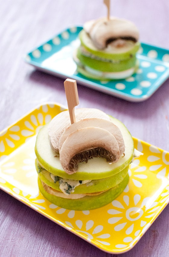 Si vous suivez régulièrement ce blog, vous savez que j’ai réalisé 26 recettes pour le site champignonidee.fr ! Aujourd’hui je vous propose une recette d’une simplicité enfantine, pour un moment 100% gourmandise. Ce petit mille feuille de pomme, fourme d’Ambert et champignon est parfait pour une entrée fraîche et créative.
