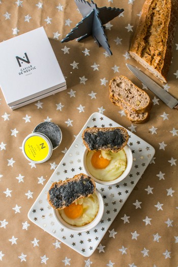 On commence cette série de recettes de Noël par une entrée festive, facile et gourmande : les œufs cocottes. Je les ai accommodés d’un velouté de chou fleur et de tartines de beurre de caviar. Ces 3 ingrédients se marient à merveille ensemble. Pour le beurre de caviar, j’ai découvert celui proposé par De Neuvic. C’est une excellente alternative au caviar classique, qui permet d’avoir un peu de caviar à prix plus abordable.