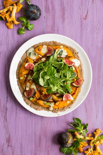 J’avais très envie de saveurs automnales. Cette saison nous offre bien plus de trésors qu’on ne le pense. Si beaucoup préfèrent l’été pour la variété de ses fruits et les légumes regorgeant de soleil, moi j’aime définitivement l’automne pour ses couleurs et ses saveurs « noisette ». Quand je suis allée faire mes courses, je me suis retrouvée avec le panier plein de girolles, de figues et de potimarron, et j’étais convaincue que je pouvais en faire quelque chose de vraiment délicieux. Puis, j’avais envie de pizza… alors je me suis lancée et cette recette est née. Certes il n’y a plus de figues au supermarché, mais vous pouvez encore en trouver quelques unes de saison chez votre primeur. N’hésitez pas !