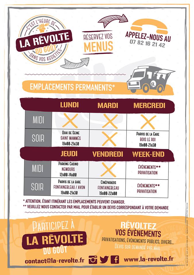 Allez, comme je suis sympa je vous donne les derniers emplacements et menus en date, mais attention c’est susceptible d’évoluer. Le mieux, c’est de les appeler et de suivre de très près leurs activités sur la page Facebook !