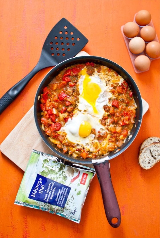Depuis que j’ai vu cette recette maghrébine sur le blog de Made in Cooking, je ne faisais qu’y penser. Je la trouve idéale pour utiliser les quelques légumes qu’il reste au fond du frigo, il s’agit également d’une recette très équilibrée. Ainsi, quand j’ai reçu à tester le mélange d’épices thaï de chez Thiriet, je ne pouvais plus passer à côté de l’occasion de réaliser cette recette. Une chose est sûre, c’est que je la referai souvent. Elle est vraiment idéale !